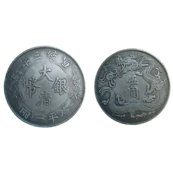 龙纹细节:对比宣统三年壹圆型的 “曲须龙”,观察龙鳞的排列、龙爪的形态、云纹的走势,伍圆型的龙纹应与其风格一致,且细节更丰富;